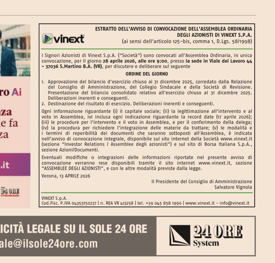 ESTRATTO CONVOCAZIONE SOLE24ORE