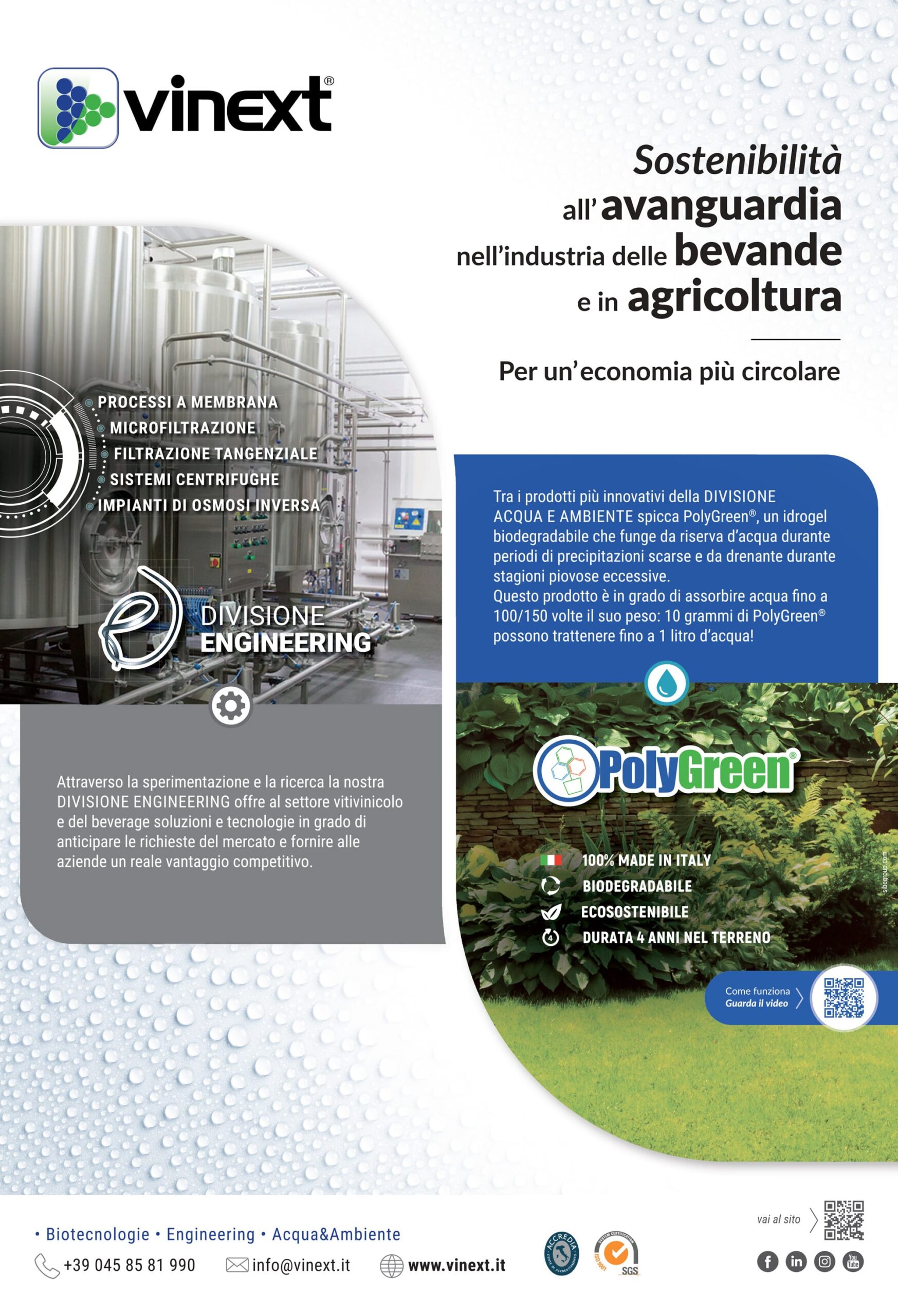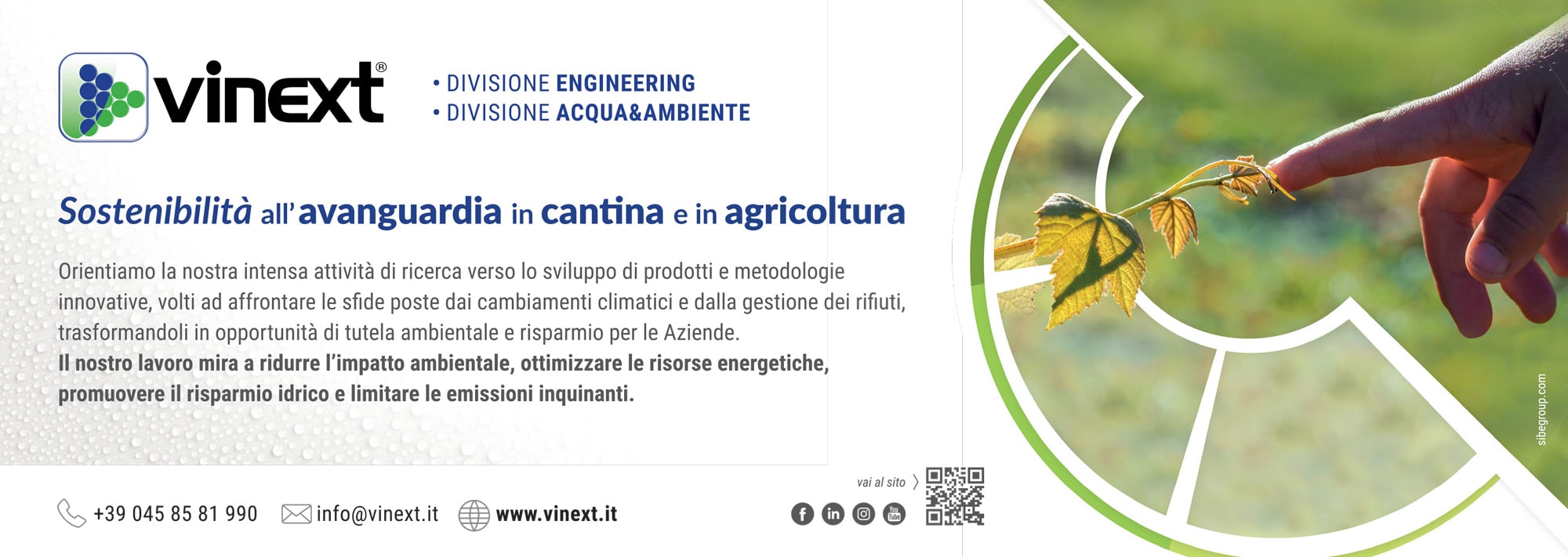 Vinext presenta soluzioni innovative per il settore vitivinicolo e agricolo, mirate a ridurre l’impatto ambientale, ottimizzare le risorse energetiche, promuovere il risparmio idrico e limitare le emissioni inquinanti. L’intervista dei nostri relatori Salvatore Vignola – Ceo di Vinext – e Lara Pozzato – Responsabile Ricerca&Sviluppo della Divisione Acqua e Ambiente.