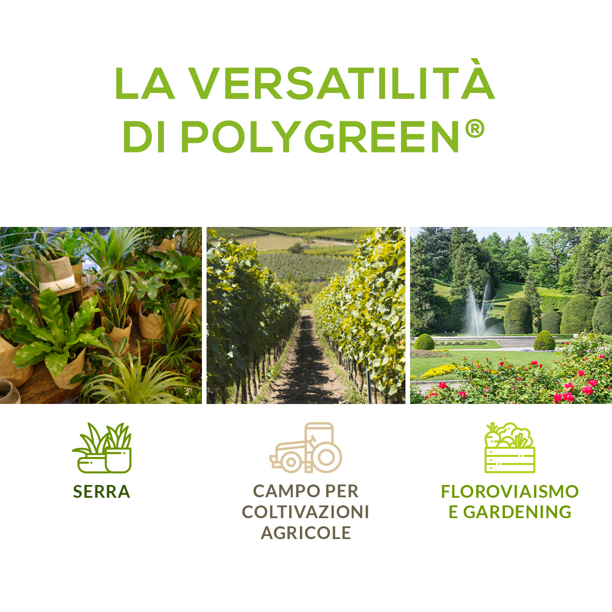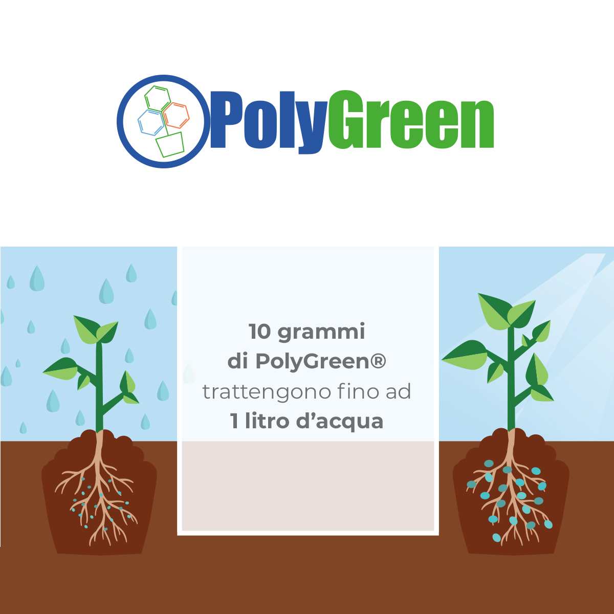 È totalmente biodegradabile: 10 g di polygreen assorbono fino a 1 litro d’acqua!