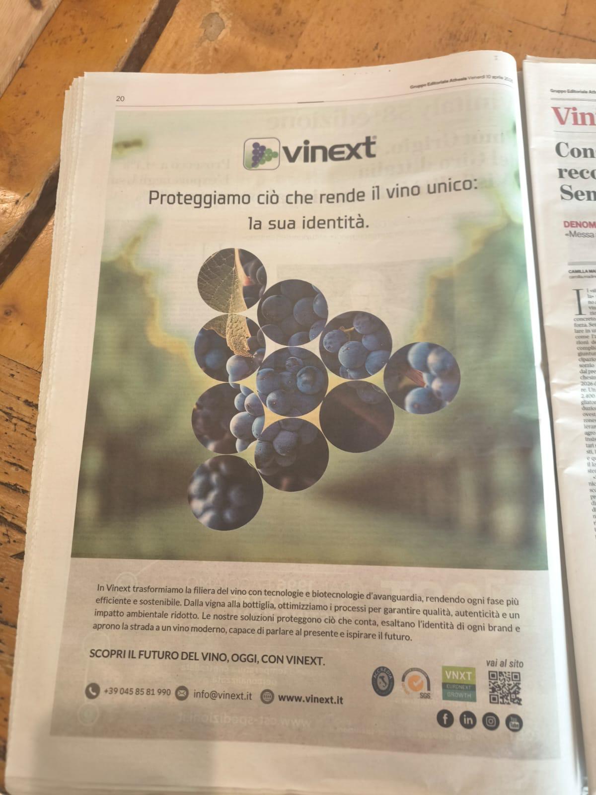 Vinext SpA nello Speciale Inserto Vinitaly 2026 de L’Arena